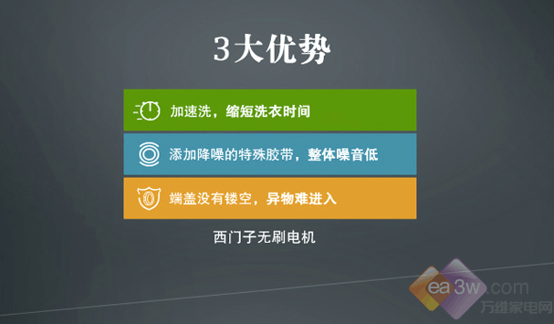 这款洗衣机人性化设计,LED触摸屏,显示各洗衣程序耗电高低档,490MM大门圈,羽绒、床单、被罩等大件衣物,轻松取放,更加方便,静音纤薄,加速节能自由。